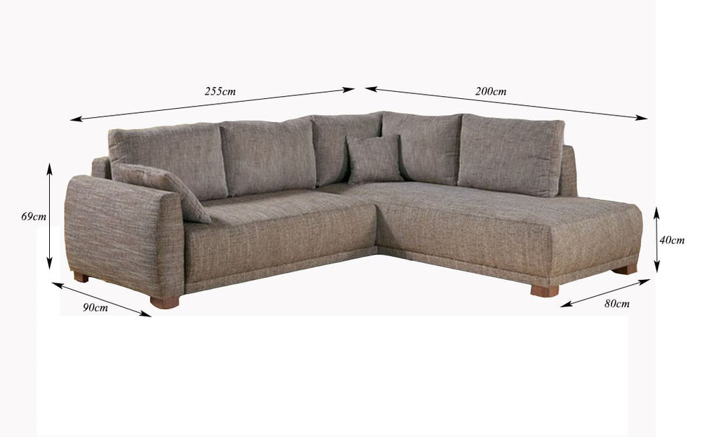 The Greco corner sofa piece is highly impressive, you will appreciate the agreeable comfort and elegant design. All at a reasonable Price! This distinguished furniture's frame is made of a solid wood with elements of plywood and laminated board all incorporated by prestige carpentry. Whilst boasting the Bonnell spring type seats this offering responsive comfort and durability and the backrests are made of elastic polyurethane foam. Character wood or nickel decorative legs giving an original profound appearance.We can offer alternative fabrics or leather finishing with made to measure dimensions of furniture for your needs.